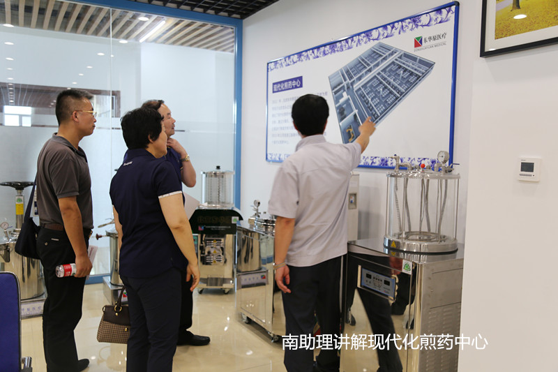 ? ? ? 領導們在南助理的帶領下先后參觀了生產(chǎn)中心,營銷中心及研發(fā)中心。在生產(chǎn)車間,南助理向來訪領導們詳細講解了中藥煎藥機及醫(yī)療產(chǎn)品整個生產(chǎn)線的生產(chǎn)流程及工藝制作,市領導們給予了極大的贊許。寬敞整齊的車間和先進的生產(chǎn)設備,讓來訪領導們嘆為觀止。
