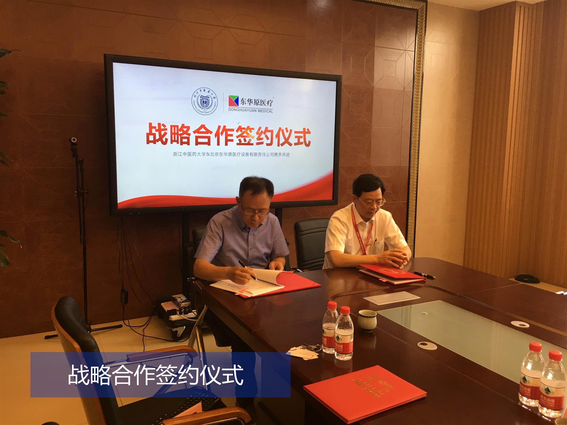 2018年5月26日,北京東華原醫(yī)療設(shè)備有限責(zé)任公司與浙江中醫(yī)藥大學(xué)“產(chǎn)—學(xué)—研”合作戰(zhàn)略協(xié)議簽約儀式在京舉行。東華原醫(yī)療董事長南龍、總經(jīng)理姜黎濱,浙江中醫(yī)藥大學(xué)副校長郭清等領(lǐng)導(dǎo)出席了本次簽約儀式。