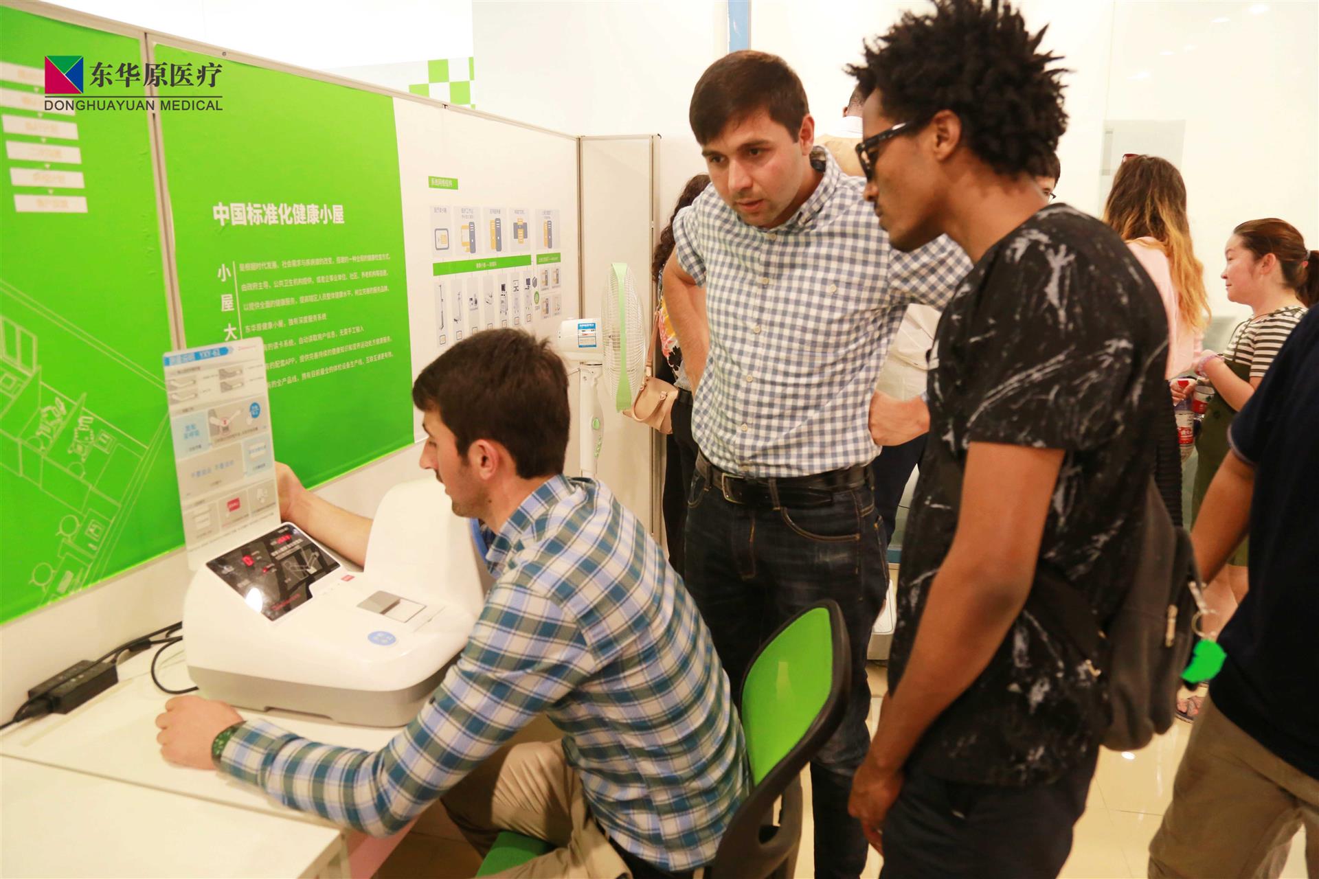 ? ??? ?留學(xué)生們落座公司多功能廳,國(guó)際貿(mào)易部主管全英文介紹了北京東華原基本概況和發(fā)展歷史,隨后,留學(xué)生們參觀健康小屋展廳,親身感受了健康小屋的魅力。在展廳,留學(xué)生們摩拳擦掌爭(zhēng)先體驗(yàn)了身高體重儀、精神壓力分析儀、血壓儀及人體成分分析儀,并向現(xiàn)場(chǎng)工作人員詳細(xì)詢問檢測(cè)結(jié)果。