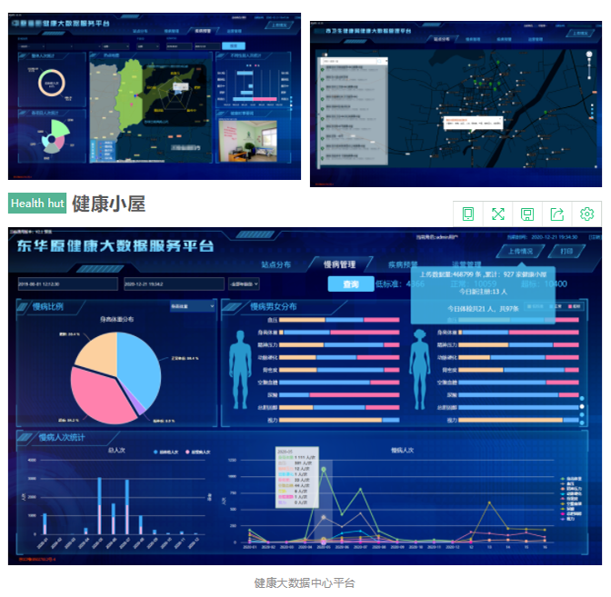 同時(shí),健康小屋還支持接入健康大數(shù)據(jù)中心平臺(tái),可對(duì)檢測(cè)數(shù)據(jù)統(tǒng)計(jì)分析,實(shí)現(xiàn)主要慢病與疾?。ǜ哐獕?、腦卒中、肥胖、糖尿病、冠心病等)的風(fēng)險(xiǎn)預(yù)警。健康云可接駁大屏幕電視,監(jiān)控各臺(tái)體檢設(shè)備的運(yùn)轉(zhuǎn)情況和各個(gè)體檢者的檢測(cè)過(guò)程。強(qiáng)大的網(wǎng)絡(luò)互聯(lián)功能將健康數(shù)據(jù)及時(shí)有效地發(fā)送到上級(jí)主管部門的服務(wù)器,方便健康決策和健康管控的進(jìn)行。