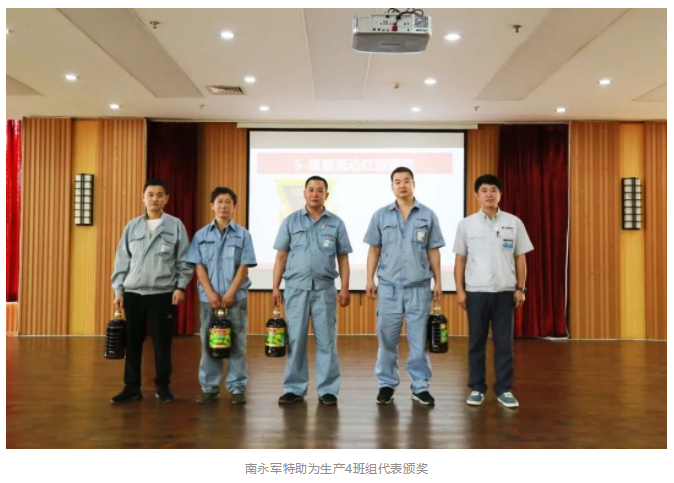 為嚴格落實質(zhì)量管理工作,啟動會上,各中心負責人以“我為質(zhì)量說句話”為主題,進行了質(zhì)量保證宣誓。南永軍特助為獲得質(zhì)量流動紅旗的生產(chǎn)4班組代表頒發(fā)了獎品。
