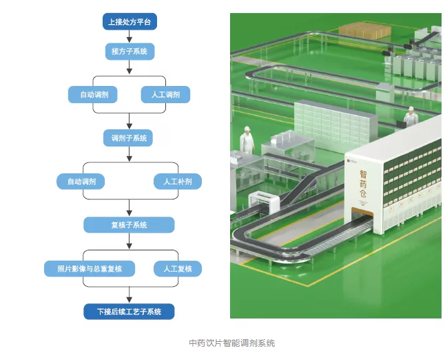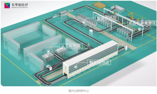 中藥的制備和“智”備:現(xiàn)代化煎藥中心(智慧中藥房)是運(yùn)用計(jì)算機(jī)控制、物聯(lián)網(wǎng)及互聯(lián)網(wǎng)技術(shù),以煎藥、包裝設(shè)備為中心,將煎藥工藝流程(包括處方管理、調(diào)劑、浸泡、物料傳輸、煎藥、包裝、物流配送)、終端客戶服務(wù)、設(shè)備和人員管理、煎藥工藝質(zhì)量控制等環(huán)節(jié)進(jìn)行全過程控制與管理的創(chuàng)新煎藥服務(wù)模式。