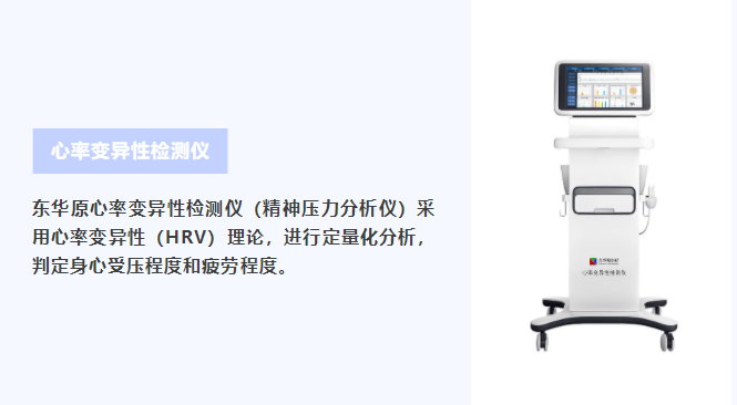 東華原心率變異性檢測儀(精神壓力分析儀)適用于精神衛(wèi)生科、心理咨詢室、精神疾病中心等專業(yè)科室,適用于婦幼保健科室、老年疾病科室和心血管科室等臨床科室,也可應(yīng)用于體檢中心、慢病管理中心、治未病中心等健康管理機構(gòu)和心理衛(wèi)生研究、心血管疾病研究等相關(guān)的科研機構(gòu)。