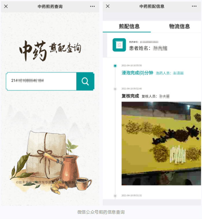 患者可通過微信隨時查詢藥物的煎煮進度;