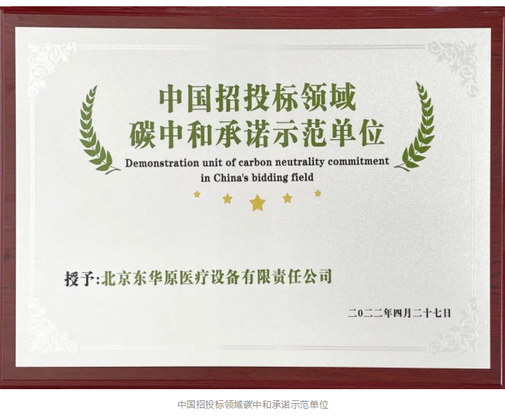 近日,經(jīng)工信部中國招標投標網(wǎng)評審,北京東華原醫(yī)療設(shè)備有限責任公司榮獲“中國招投標領(lǐng)域碳中和承諾示范單位”稱號,碳諾簽NO.0000599。