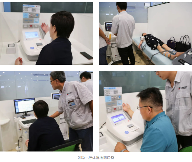 在參觀(guān)之余,各位領(lǐng)導(dǎo)還親自體驗(yàn)了醫(yī)用電子血壓儀、精神壓力分析儀、動(dòng)脈硬化檢測(cè)儀等健康體檢設(shè)備,肯定了東華原多年來(lái)的全系列健康體檢設(shè)備布局,獲得了快速、便捷、專(zhuān)業(yè)、舒適的檢測(cè)體驗(yàn)。