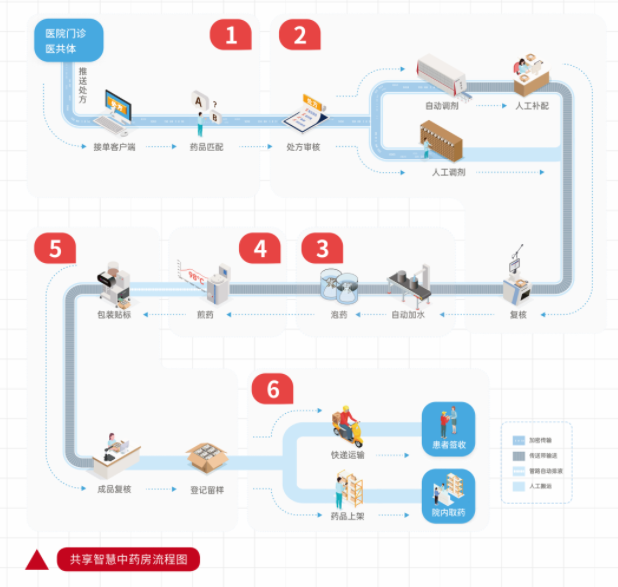 東華原智慧中藥房解決方案是運(yùn)用計(jì)算機(jī)控制、物聯(lián)網(wǎng)及互聯(lián)網(wǎng)技術(shù),以煎藥、包裝設(shè)備為中心,將煎藥工藝的多個(gè)流程、終端客戶服務(wù)、設(shè)備和人員管理、煎藥工藝質(zhì)量控制等環(huán)節(jié)進(jìn)行全過(guò)程控制與管理的創(chuàng)新煎藥服務(wù)模式。目前,東華原智慧中藥房(現(xiàn)代化煎藥中心)已在全國(guó)落地300余家,成為中醫(yī)藥現(xiàn)代化的中堅(jiān)力量。