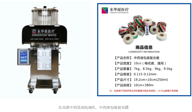 東華原中藥湯劑包裝機自動包裝、根據(jù)處方醫(yī)囑50-250ml無級變量可調(diào)包裝。