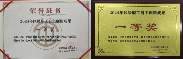 活動(dòng)現(xiàn)場(chǎng)為新認(rèn)定的13項(xiàng)區(qū)級(jí)職工創(chuàng)新成果、2項(xiàng)市級(jí)職工創(chuàng)新成果舉行了頒牌儀式。其中,由東華原進(jìn)行申報(bào)的“中藥房智能生產(chǎn)線(現(xiàn)代化智慧中藥房升級(jí)改造)”項(xiàng)目,榮獲2024年區(qū)級(jí)職工自主創(chuàng)新成果一等獎(jiǎng)。區(qū)人大常委會(huì)黨組副書記、副主任,區(qū)總工會(huì)主席劉長永為東華原進(jìn)行成果授牌。?