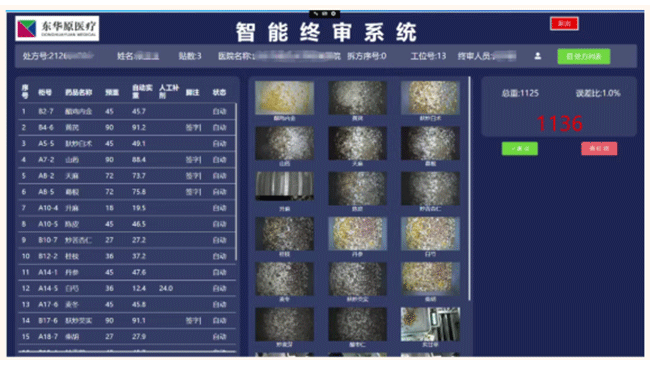 調劑設備(智藥倉)內置不同規(guī)格藥斗,可覆蓋常見飲片種類,藥框經過處方對應藥斗時,系統(tǒng)自動識別芯片,控制藥框停留,調劑設備落藥,并進行拍照。相比于人工調劑,使用智能調劑設備后的處方精度可控制在2%的誤差。