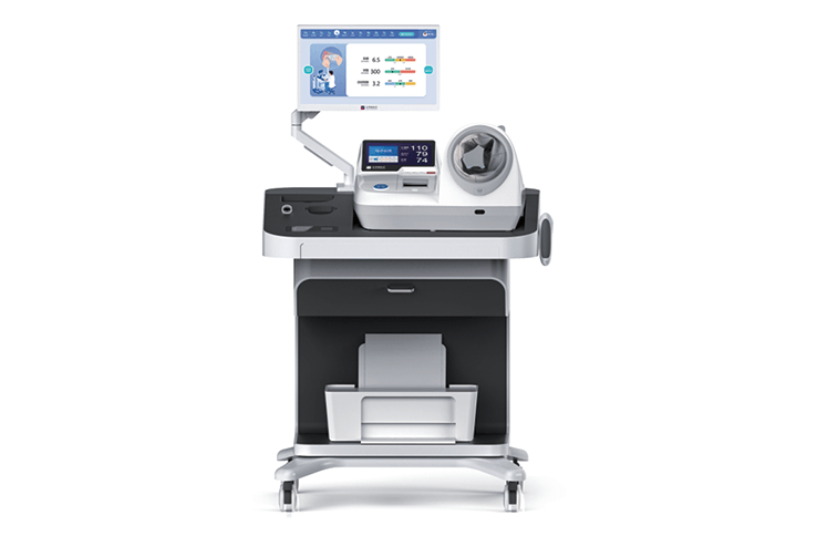 可擴(kuò)展項(xiàng)目:身高、體重、腰圍、臀圍、人體成分(總水分、蛋白質(zhì)、無機(jī)鹽、體脂肪量、肌肉量等)、心率變異(精神壓力)、尿液分析、圍度檢測(cè)、血脂四項(xiàng)分析、血紅蛋白等