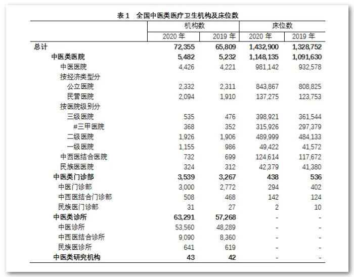 全國中醫(yī)類醫(yī)院同比增加250個!《2020年中醫(yī)藥事業(yè)發(fā)展統(tǒng)計提要報告》印發(fā)