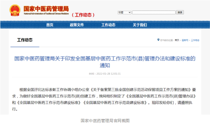 國家中醫(yī)藥管理局:全國基層中醫(yī)藥工作示范市(縣)管理辦法和建設(shè)標(biāo)準(zhǔn)印發(fā)