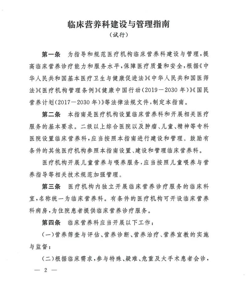 ?國家衛(wèi)健委發(fā)布《臨床營養(yǎng)科建設(shè)與管理指南》通知