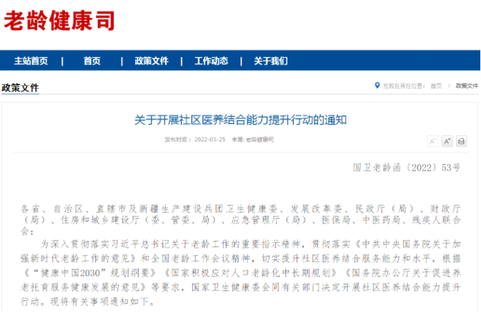 老齡健康司:關(guān)于開展社區(qū)醫(yī)養(yǎng)結(jié)合能力提升行動(dòng)的通知