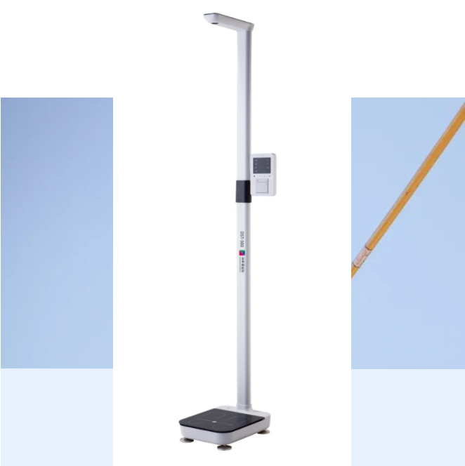 超聲波身高體重測量儀具有兩種款式,其中折疊式超聲波身高體重測量儀方便搬運移動,屏幕為LCD液晶觸摸屏,可顯示身高、體重、BMI五次測量曲線示意圖。