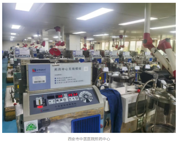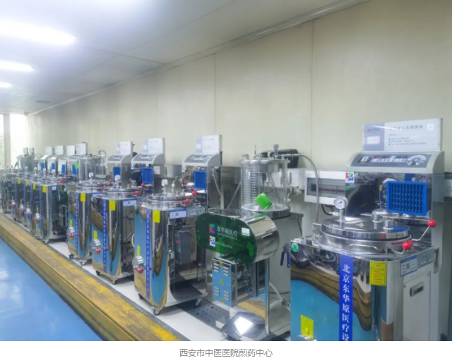 西安市中醫(yī)醫(yī)院煎藥中心占地面積2000余平方米,應(yīng)用東華原現(xiàn)代化煎藥中心解決方案,硬件上配備了十功能自動(dòng)煎藥機(jī)、中藥湯劑包裝機(jī)等150余臺(tái)設(shè)備,軟件上則應(yīng)用東華原自主研發(fā)的智能化煎藥控制系統(tǒng),從處方管理到各流程線上管控,再到中藥飲片煎煮、湯劑包裝的具體操作,做到每個(gè)環(huán)節(jié)都專業(yè)、精準(zhǔn)、高效。