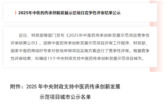 名單公示!這15個(gè)城市獲中央財(cái)政支持中醫(yī)藥傳承創(chuàng)新發(fā)展示范項(xiàng)目