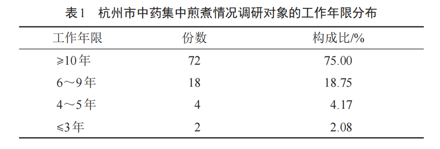 表1 杭州市中藥集中煎煮情況調(diào)研對象的