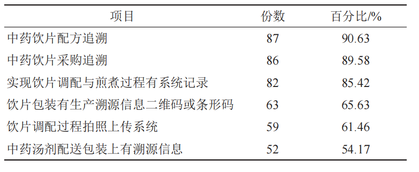 表4 杭州市中藥集中煎煮機(jī)構(gòu)全流程質(zhì)量