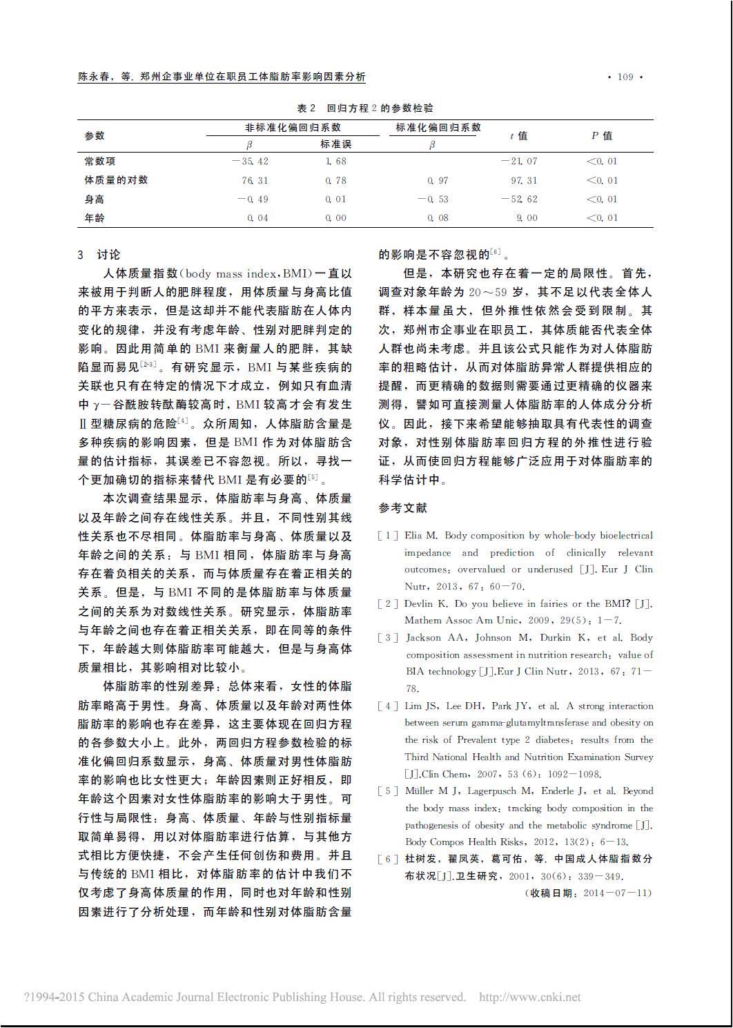 鄭州企事業(yè)單位在職員工體脂肪率影響因素分析