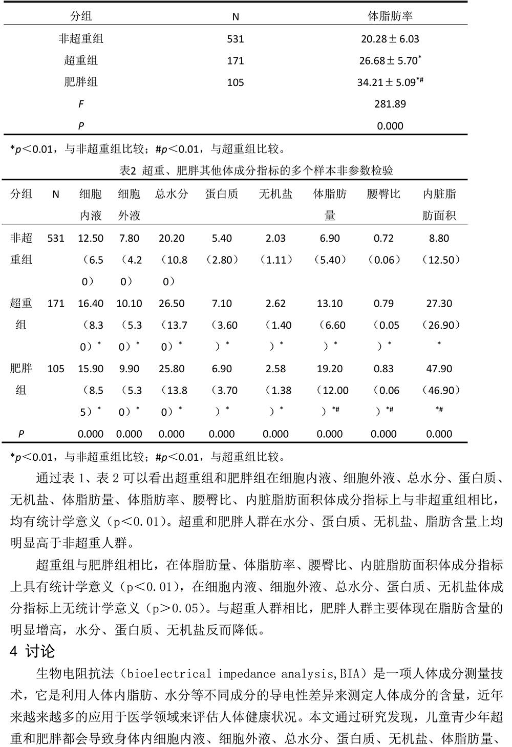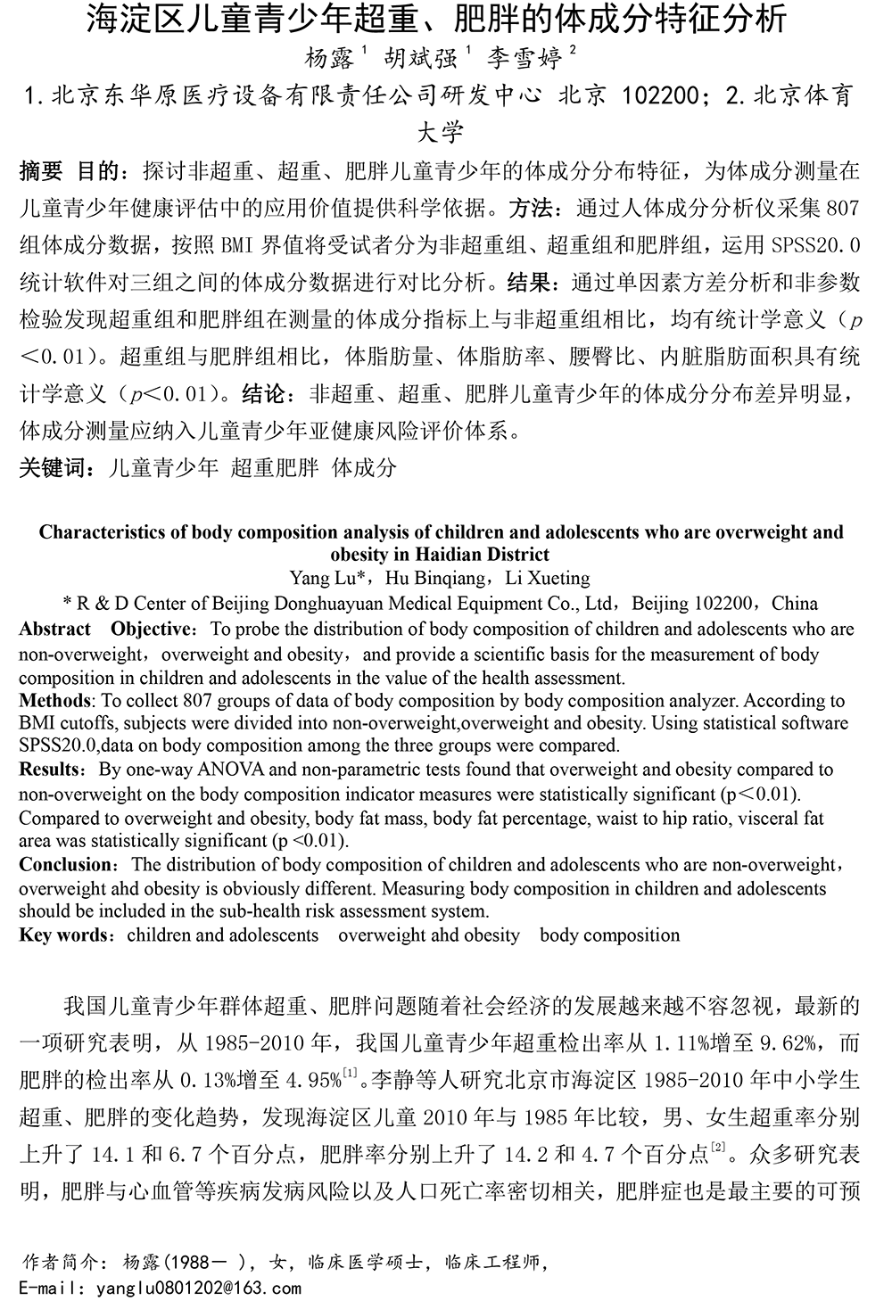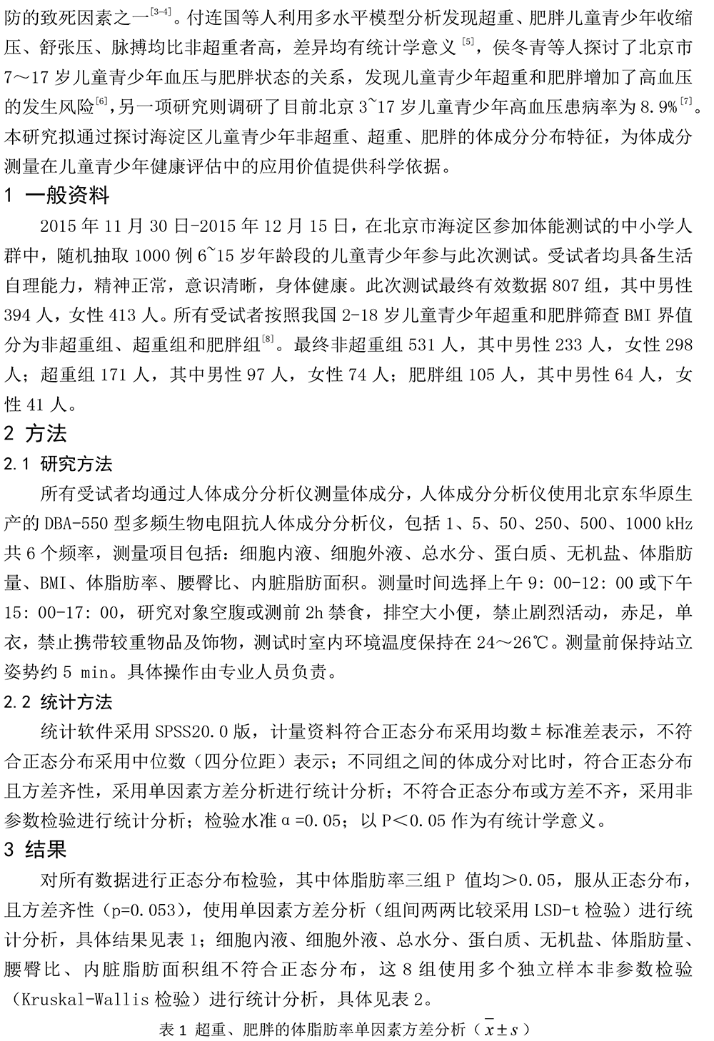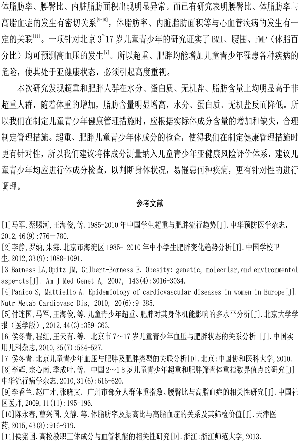 海淀區(qū)兒童青少年超重、肥胖的體成分特征分析