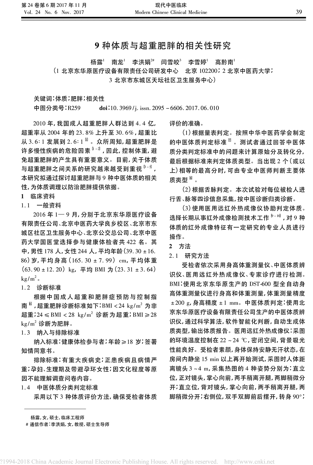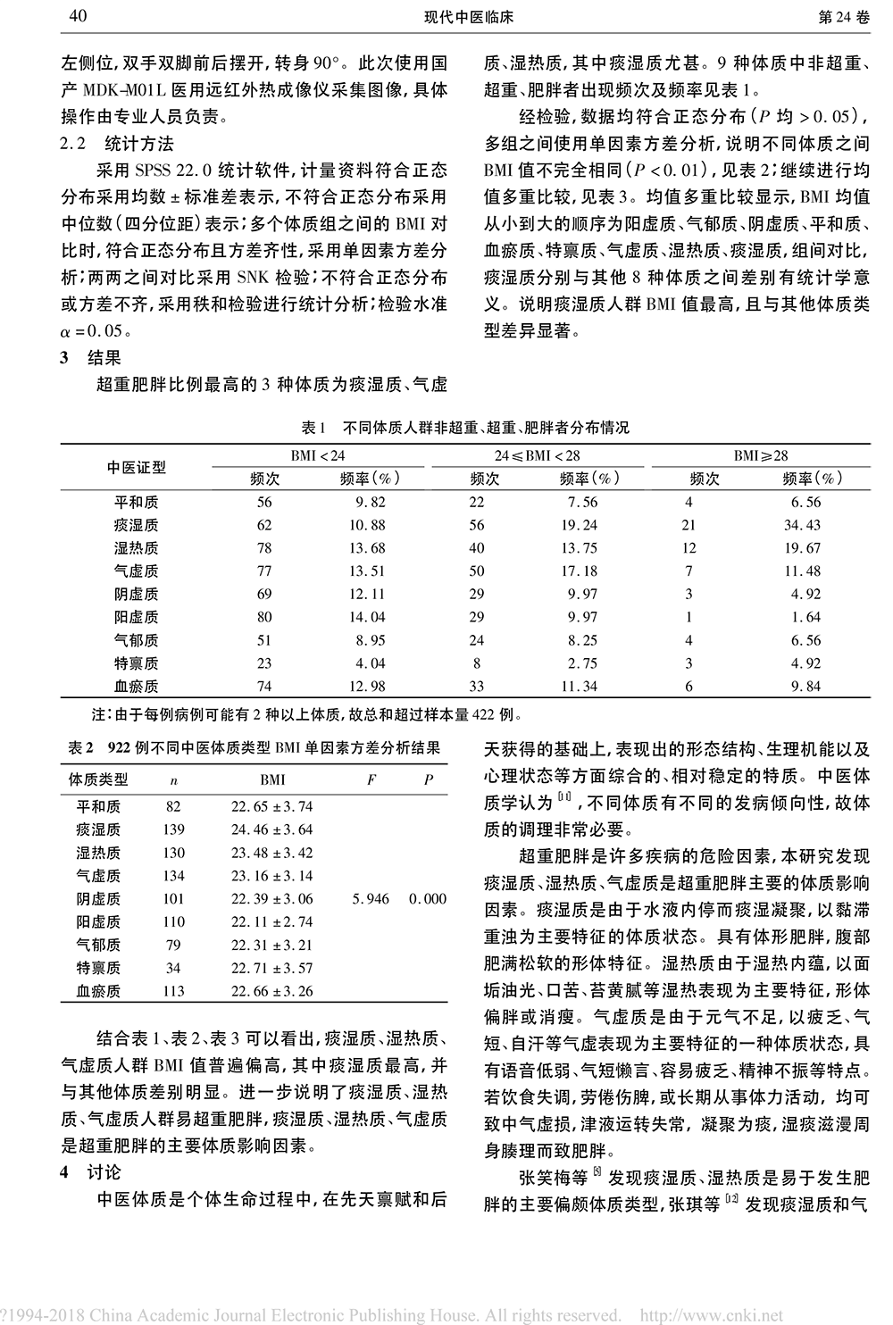 9種體質(zhì)與超重肥胖的相關(guān)性研究