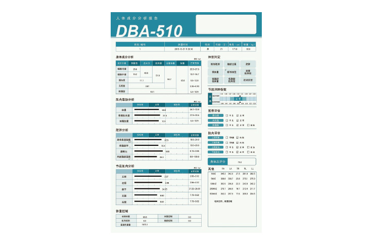 - 測(cè)量項(xiàng)目:總水分,細(xì)胞內(nèi)液,細(xì)胞外液,蛋白質(zhì),無機(jī)鹽,體脂肪量,體重,肌肉量,去脂體重,骨骼肌肉量,身體質(zhì)量指數(shù),體脂肪率,腰臀比,內(nèi)臟脂肪面積,節(jié)段肌肉量,體重控制,體型判定,全身浮腫指數(shù),營(yíng)養(yǎng)評(píng)估,肌肉評(píng)估等。