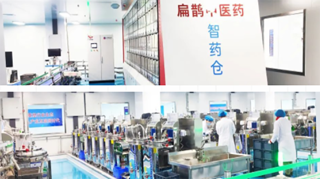 - 泰安扁鹊中医药健康产业园项目占地38亩,主要建设“两心两仓一房”,包括互联网中药材交易中心、院内制剂中心、中药材质保供货仓、道地药材种植产地仓、智慧共享中药房,属于山东省内前茅、国内一流的中医药产业创新联合体。智慧共享中药房采用了东华原智慧中药房解决方案,配备了一系列自动化设备设施:中药饮片智能调剂系统、自动加水系统、智能煎药管理系统,以及十功能自动煎药机、密闭煎药机、膏方机等专业硬件设备,覆盖煎