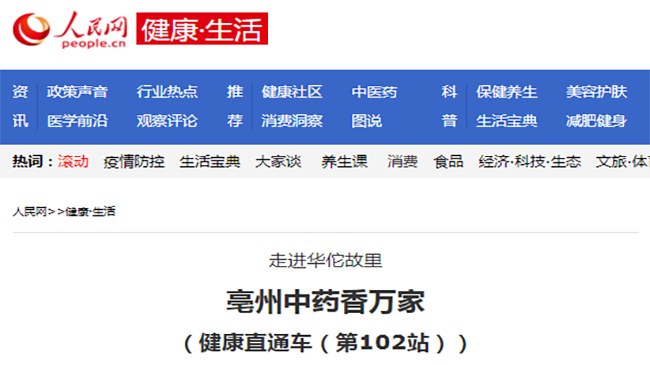 - 人民日报报道亳州智慧中药房近日,人民日报报道了亳州地区飞速发展的中医药产业。数据显示,去年,亳州现代中医药产业规模达1445.8亿元,今年1月到7月,该市中药材进出口达4.2亿元。对于中医药优质服务,人民日报报道了亳州近年来的“智慧”动向:亳州积极探索智慧共享中药房模式,让中医药搭上了互联网的列车。其中,智慧中药房是核心亮点。沪谯药业有限公司副总经理郭长达说:“医院开具处方后,代煎中心系统会同步接收到处方,