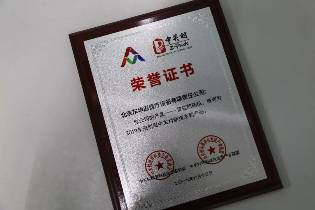 2019年5月東華原醫(yī)療的全自動(dòng)煎藥生產(chǎn)線被評為“2018年度政府采購中關(guān)村新技術(shù)新產(chǎn)品——首臺(套)重大技術(shù)裝備示范項(xiàng)目”。與此同時(shí),在本次雙創(chuàng)周活動(dòng)中,東華原醫(yī)療的智能煎藥機(jī)又獲得了”2019年雙創(chuàng)周中關(guān)村新技術(shù)新產(chǎn)品”榮譽(yù)稱號。可以說是東華原醫(yī)療在雙創(chuàng)周上雙豐收!