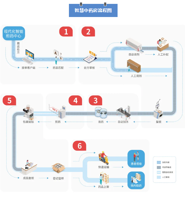 為解決中醫(yī)藥服務(wù)中的煎藥工藝質(zhì)量控制難、工藝數(shù)據(jù)追溯難和煎藥過程監(jiān)管難等痛點(diǎn)問題。東華原開發(fā)的智慧中藥房整體解決方案,將大數(shù)據(jù)、物聯(lián)網(wǎng)等技術(shù)與中醫(yī)藥深度融合,實(shí)現(xiàn)了從處方管理、智能飲片調(diào)劑、自動化加水運(yùn)輸、湯劑煎煮、信息化軟件管理、包裝及送貨上門一條龍自動化優(yōu)質(zhì)服務(wù),覆蓋湯劑、膏方、粉劑等多種劑型,同時(shí),還實(shí)現(xiàn)了全流程的一條龍監(jiān)管,讓中藥煎藥成為賞心悅目的事。